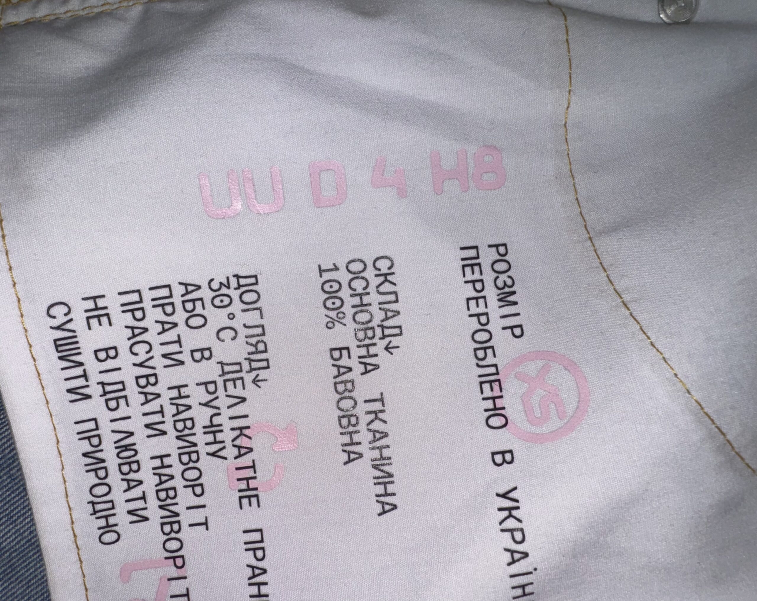 Ddenim (або інша буква, що позначає назву тканини, з якої зроблена річ);