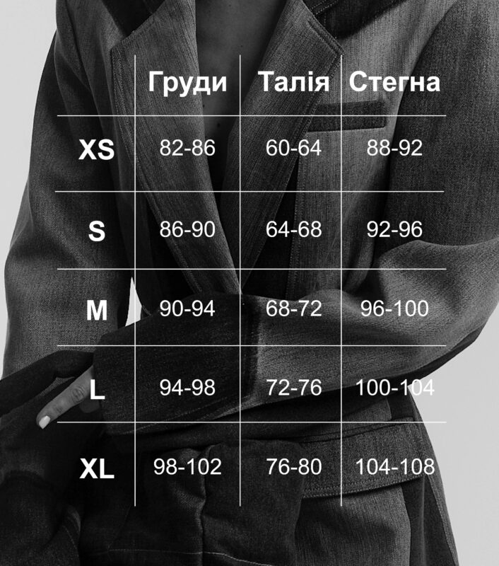 Обхват грудей | Обхват талії | Обхват стегон | Довжина по спині | |