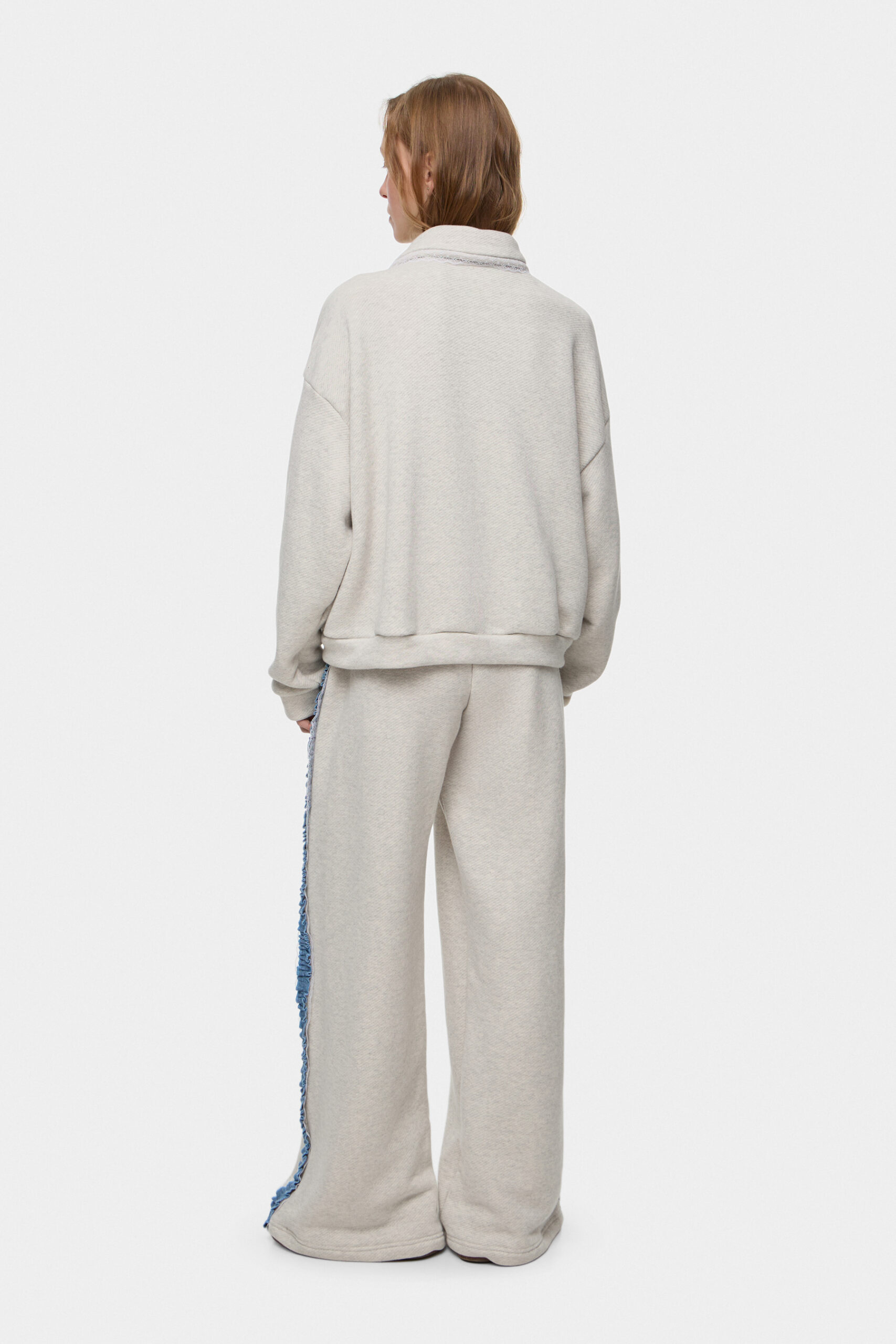 Худі вільного силуету зі зручною посадкою для щоденного носіння. Рюші з деніму додають фактурності й характеру, а оздоблення мереживом на комірі створює ніжний, делікатний акцент.