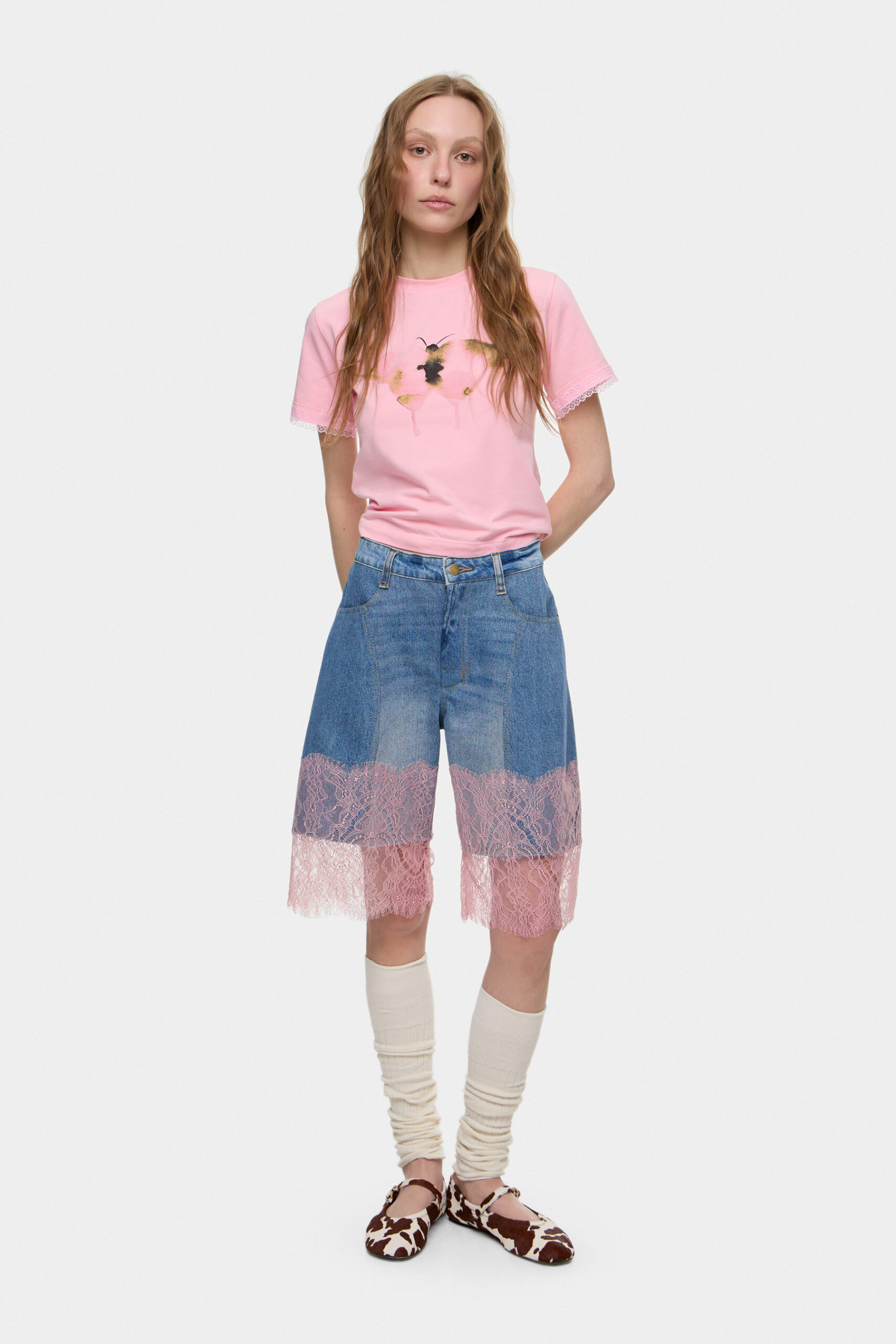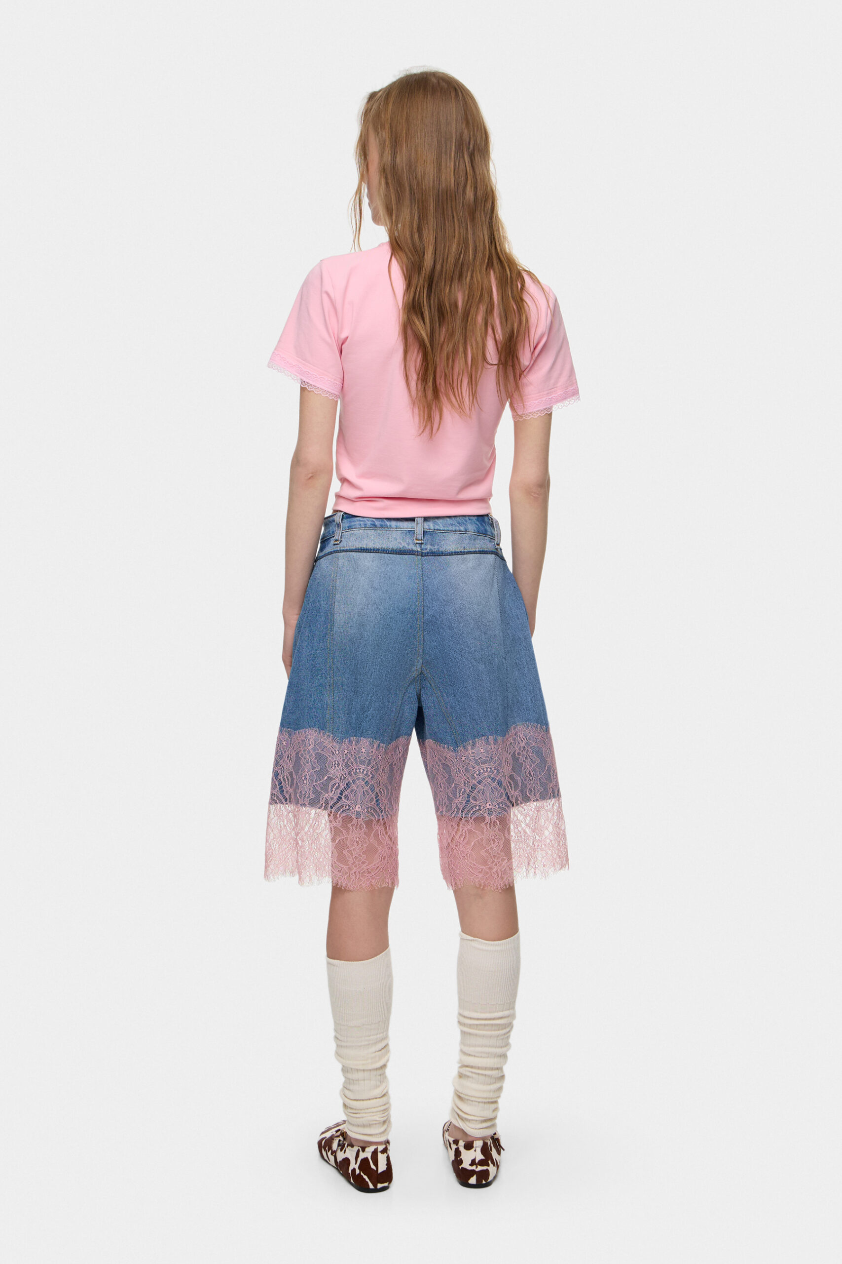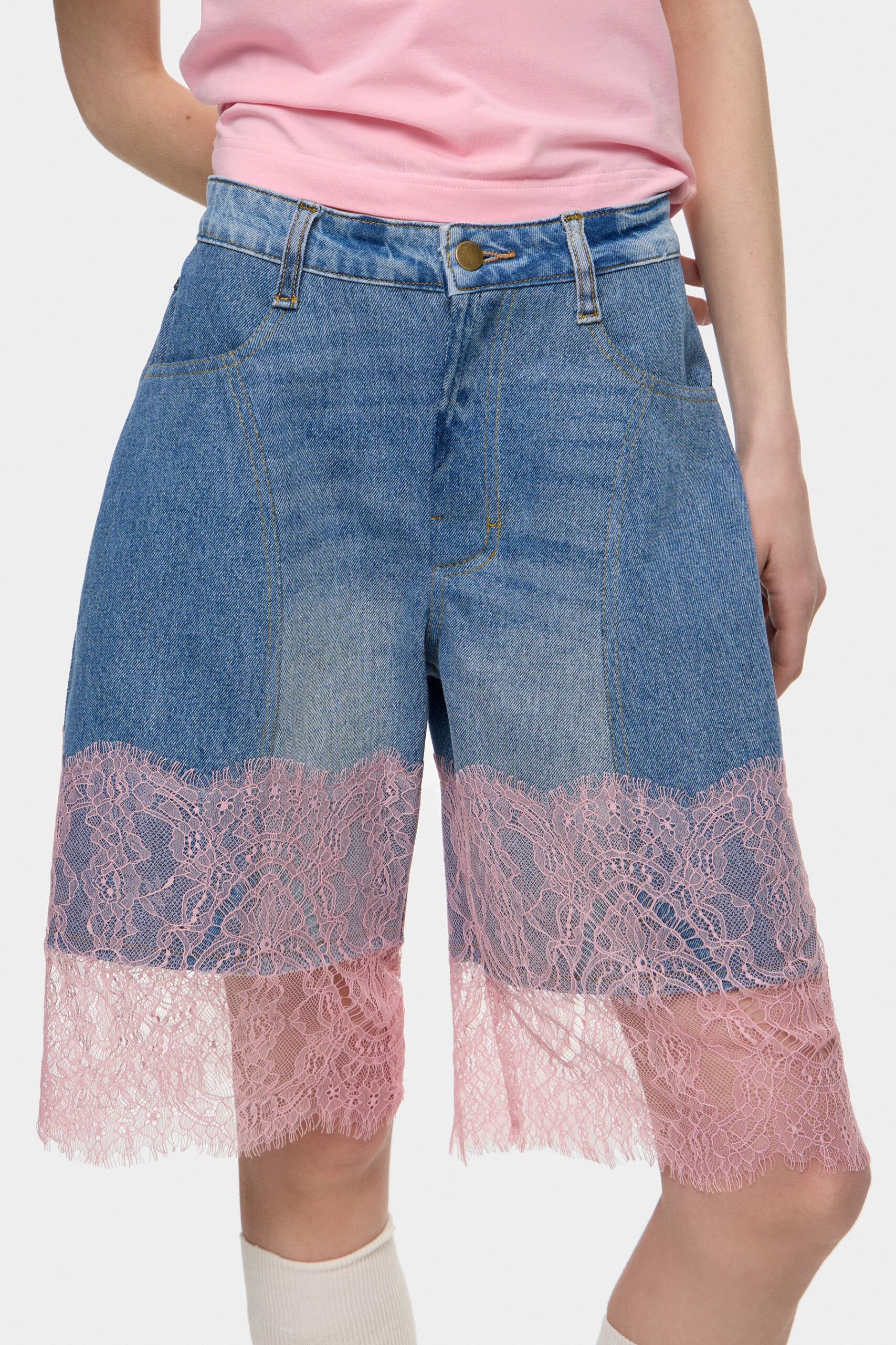 Шорти з мережива на середній посадці, що поєднують легкість і делікатну фактуру.