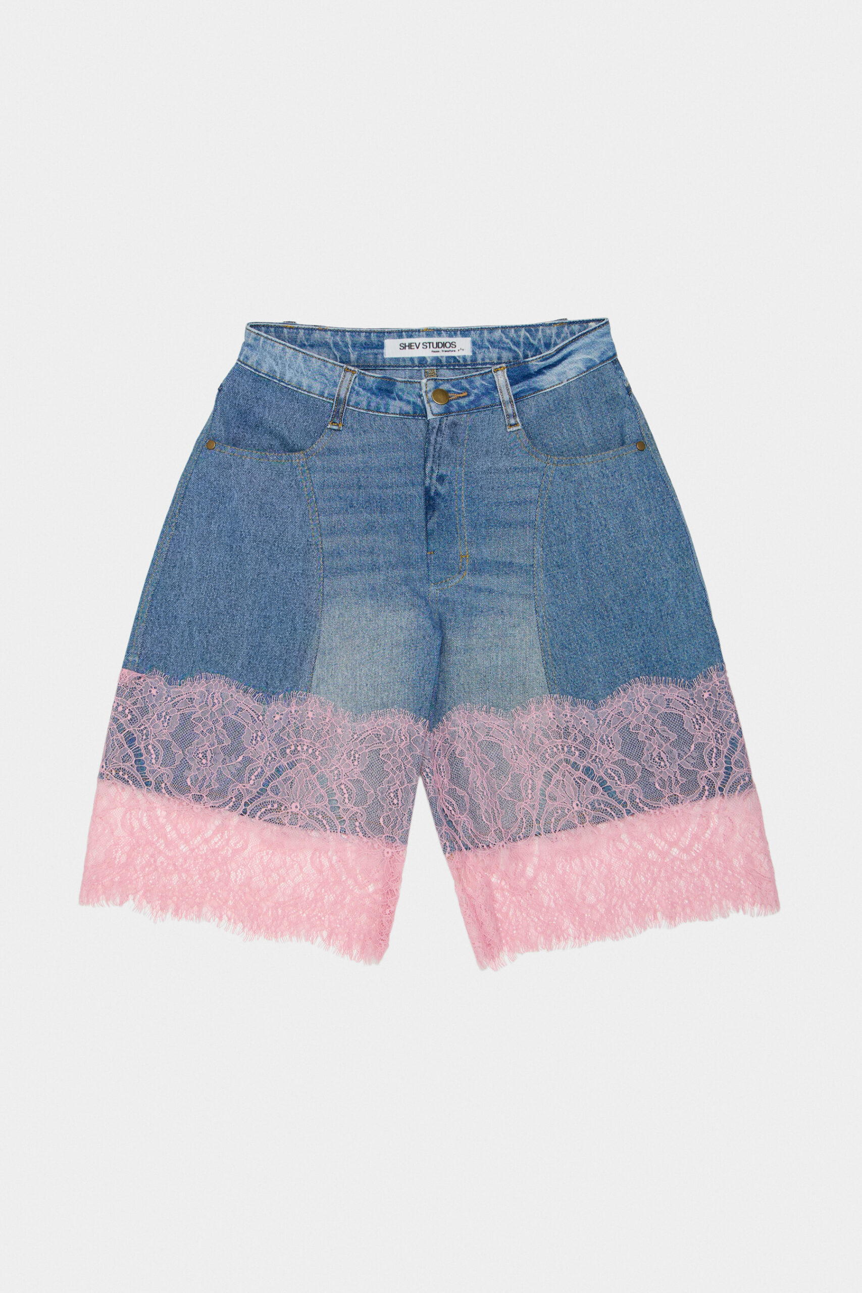 Зверніть увагу: мереживні елементи можуть дещо відрізнятися за відтінком або фактурою, оскільки матеріал використовується в обмеженій кількості та може варіюватися. Відтінок деніму може злегка відрізнятися, так як виріб створений технікою апсайклінг.