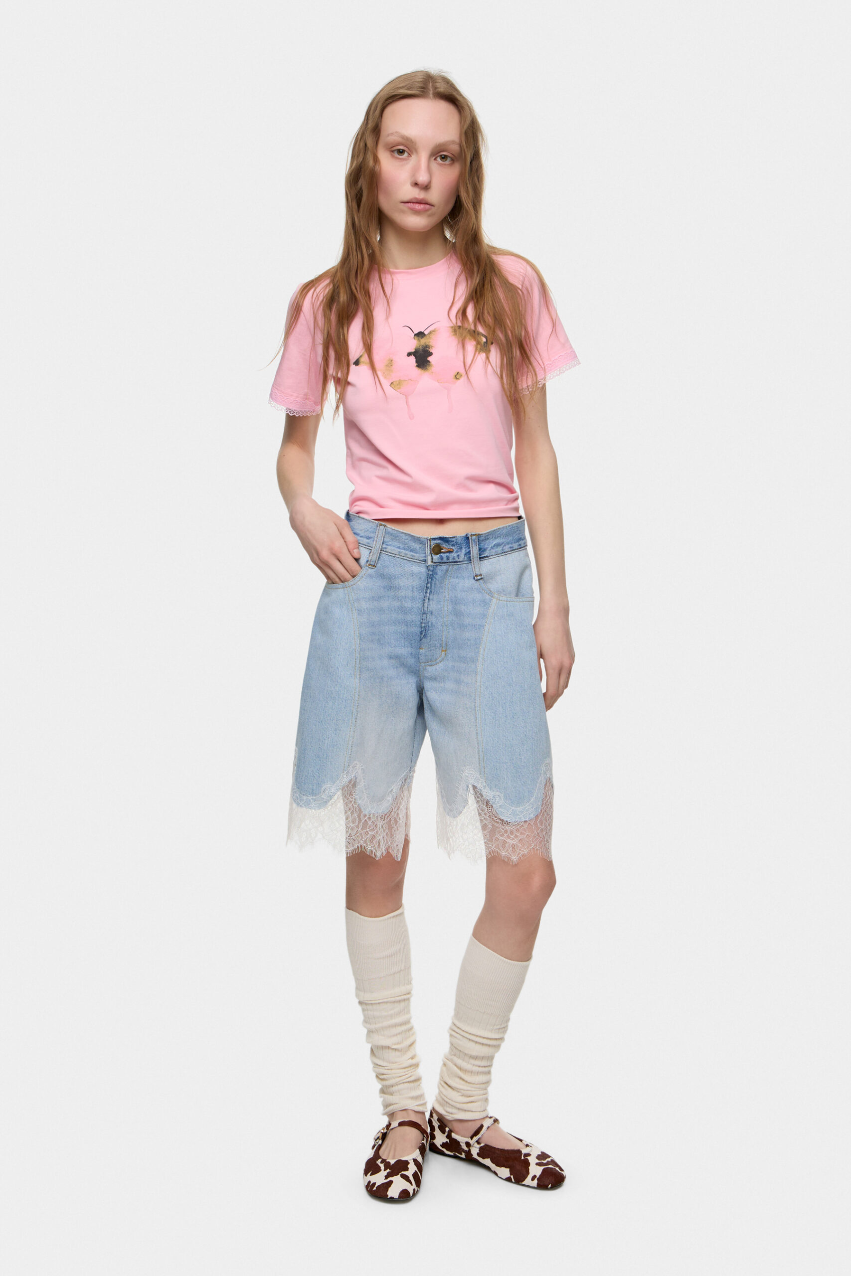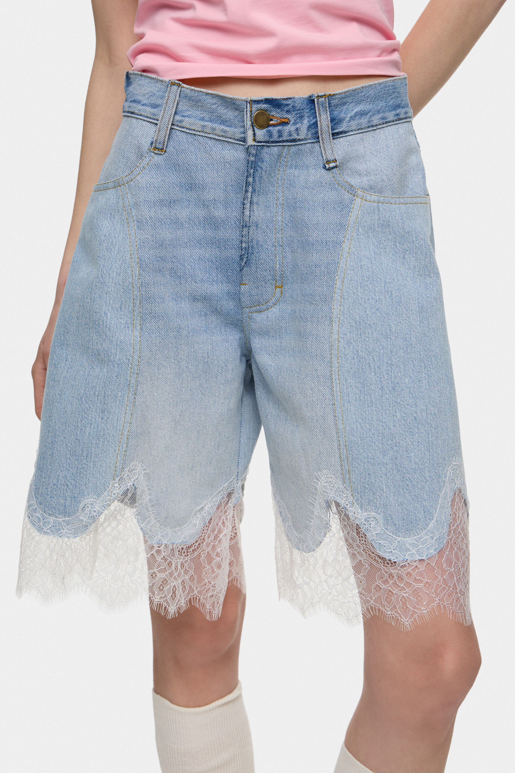 Шорти з мережива на середній посадці, що поєднують легкість і делікатну фактуру.